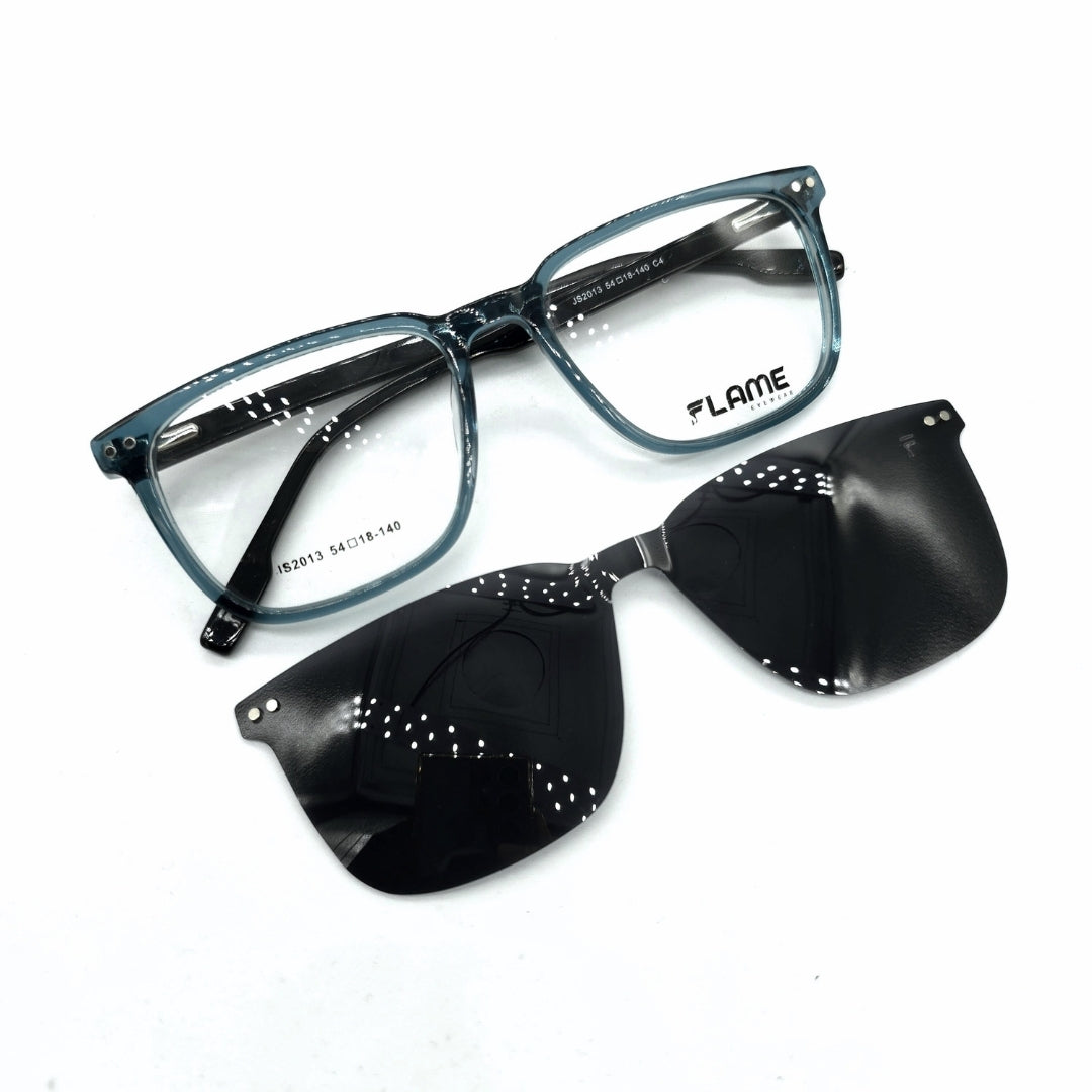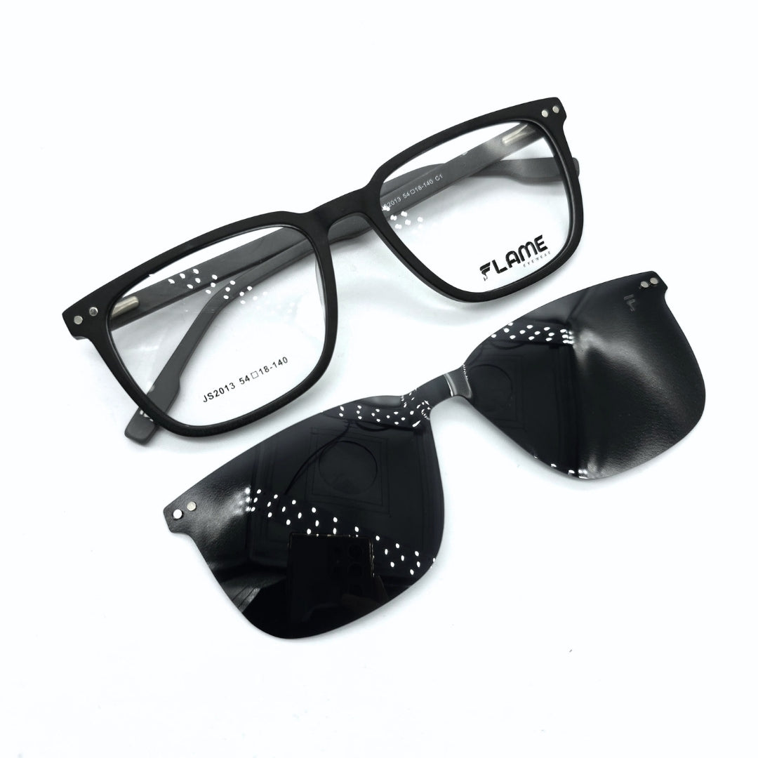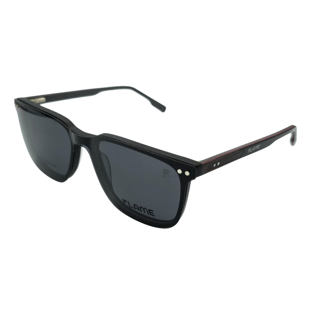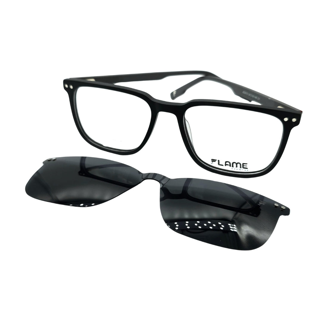 Un look, doble función. Olvídate de cargar tus lentes y gafas por separado con las monturas Clip-On de Flame, puedes usarlas tanto como lente o como gafa de sol, acoplando su imán magnético incorporado, te permite tener una gafa polarizada de la mejor calidad al alcance de tus manos.